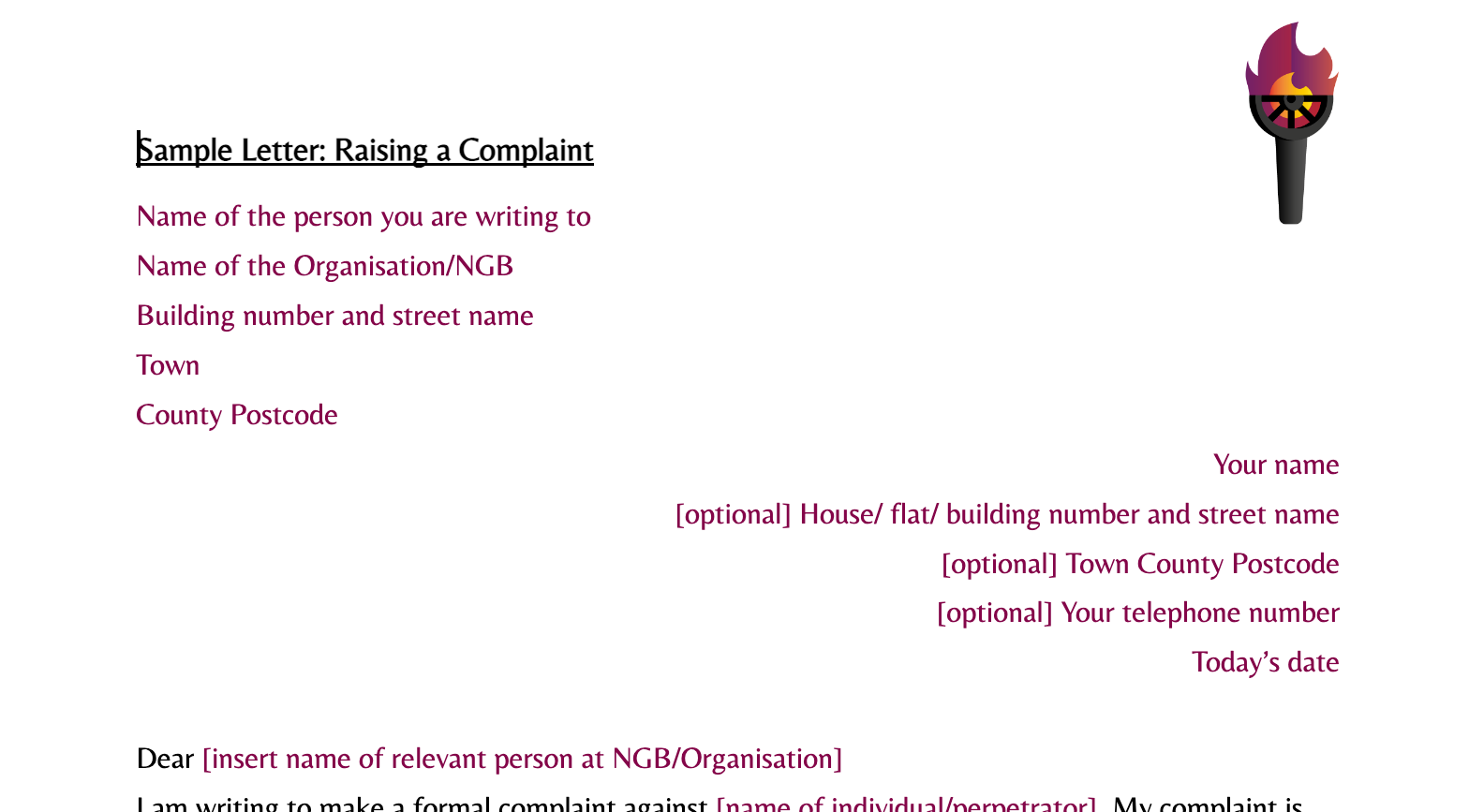 Need to raise a complaint with your club, organisation or National Governing Body?Our letter template can help guide you. Download the Template